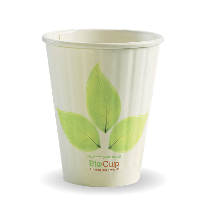 - BIOHOT CUP 90MM D/WALL LEAF 8OZ (50/1000)