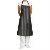 - CHEFS BIB APRON WOVEN BLACK/WHITE STRIP